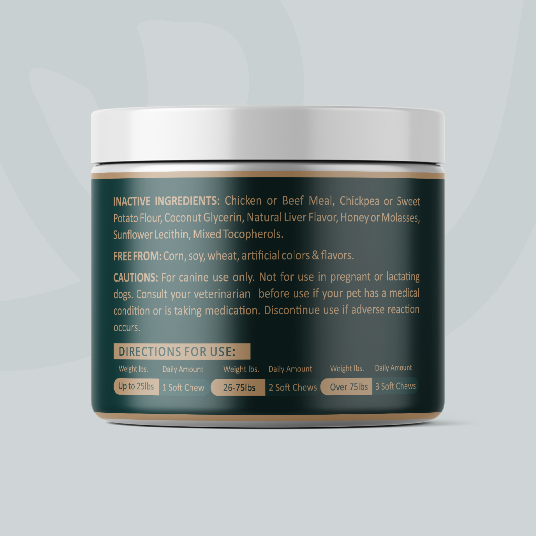 Professional Recommendation: Dosing calculations based on 90 chews per container. Individual pet requirements may vary based on age, health status, and specific conditions. Always consult with a licensed veterinarian before introducing new supplements to your pet's routine, especially if your pet has existing health conditions or is taking other medications.